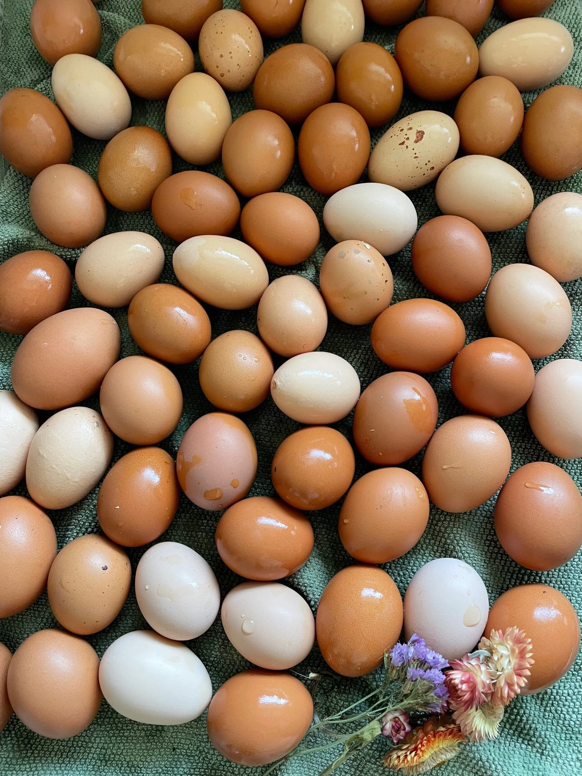 Farm fresh eggs from our happy free range hens. Pre order for farm pick up or delivery only (due to needing to be temperature controlled)