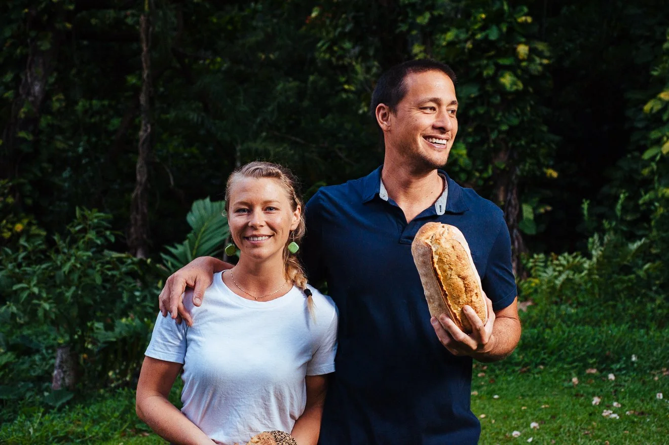 Hi! We’re Jenny and Roscoe. We’re passionate about presenting bread at its highest potential, achieved when ingredients are grown, processed, and baked all on site. Bread isn’t suppose to be complicated, that’s why we make it simple. All of our breads are naturally leavened and comprised of three main ingredients: flour, water, and salt. We mill our home grown grain into flour immediately prior to making the dough. It’s then fermented for an adequate length of time ensuring the perfect rise.